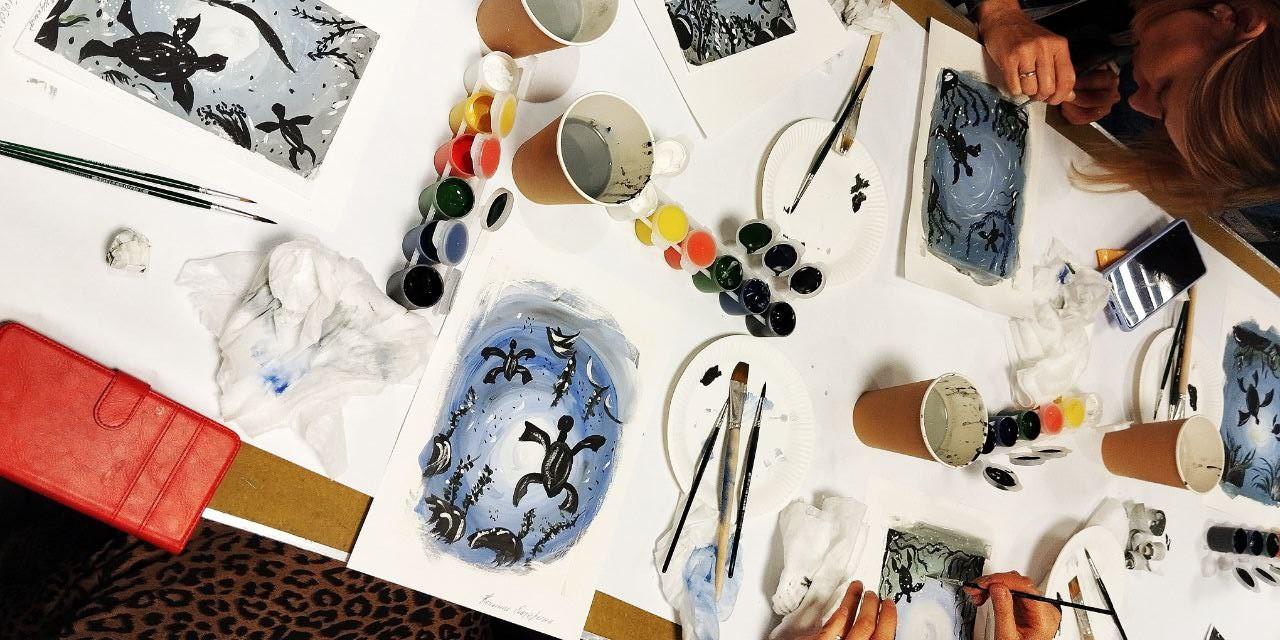 Занятия посетила, ознакомилась с новыми практиками, способами самовыражения красками на бумаге, рисовала кистью и губкой координатор проекта СОРС «Комплексная реабилитация людей с ОВЗ. Новые шаги!» Екатерина Клименко.